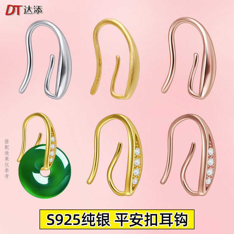 纯银平安扣耳环空托银镀18K金配件耳钩空托耳吊小孔坠diy自由挂件