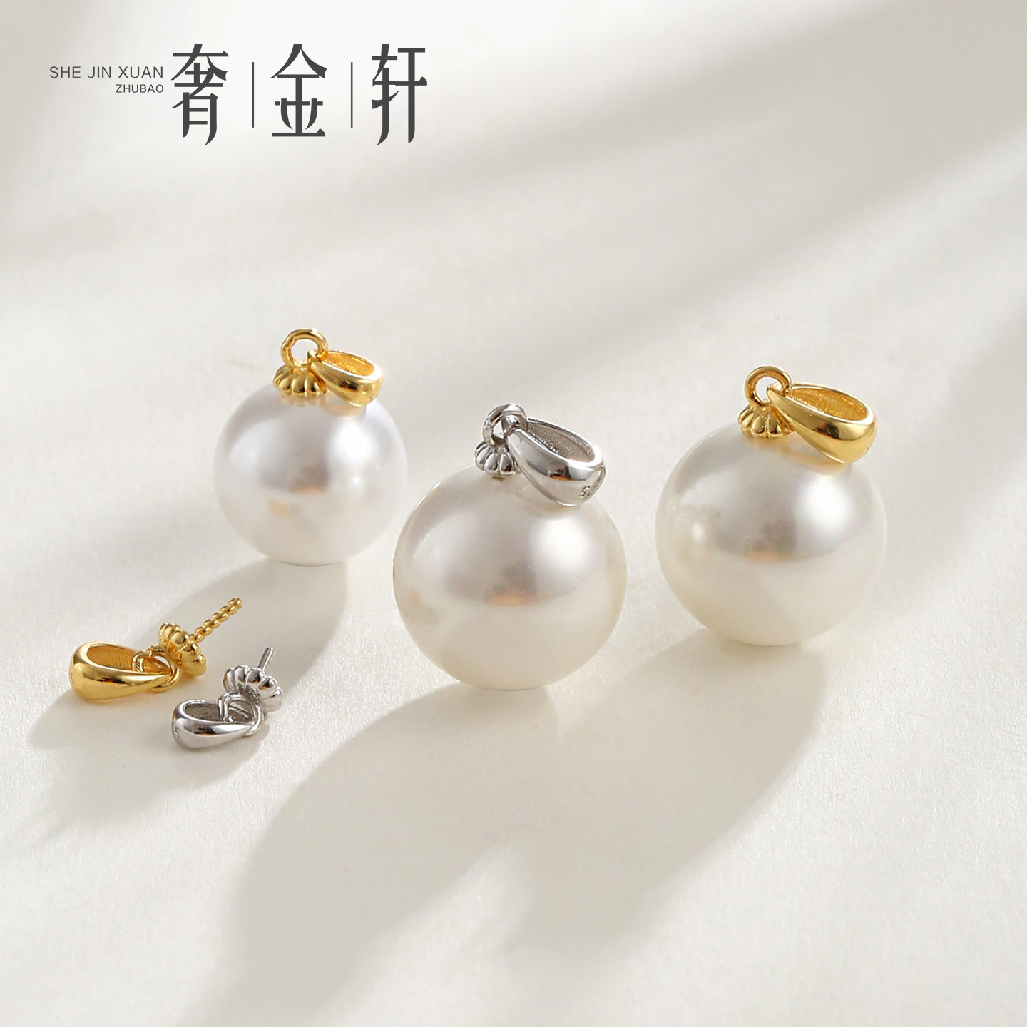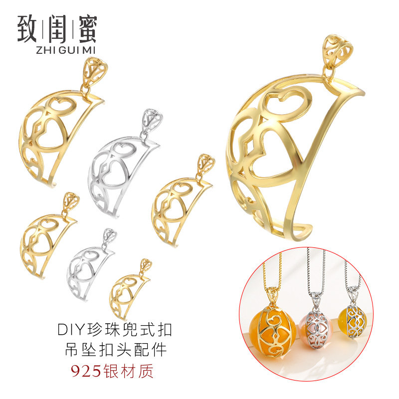 925纯银配件珍珠吊坠空托纯银坠子diy手工配饰半孔连接扣头开关扣
