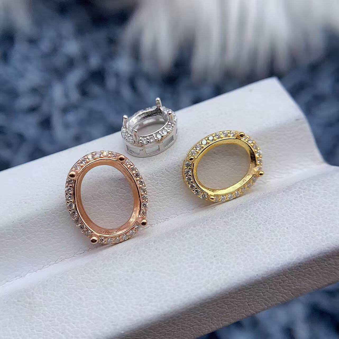 S925纯银吊坠空托椭圆形4*6/5*7/6*8/7*9/8*10/9*11/10*12路路通