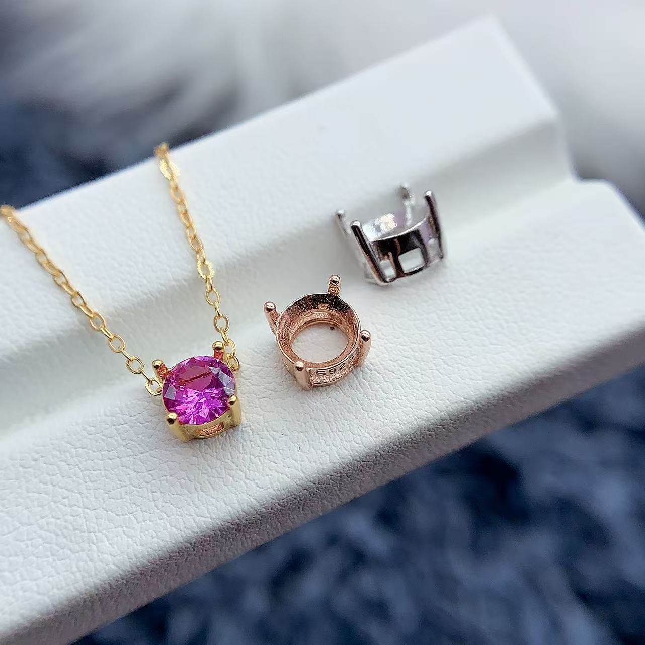 圆形4--5--6.5--8mmS925银镀白金吊坠空托 不含宝石 可代镶莫桑石