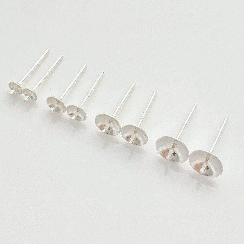 925纯银耳钉空托凹头珍珠托银色耳针珠盘配件手工DIY耳环饰品碗针