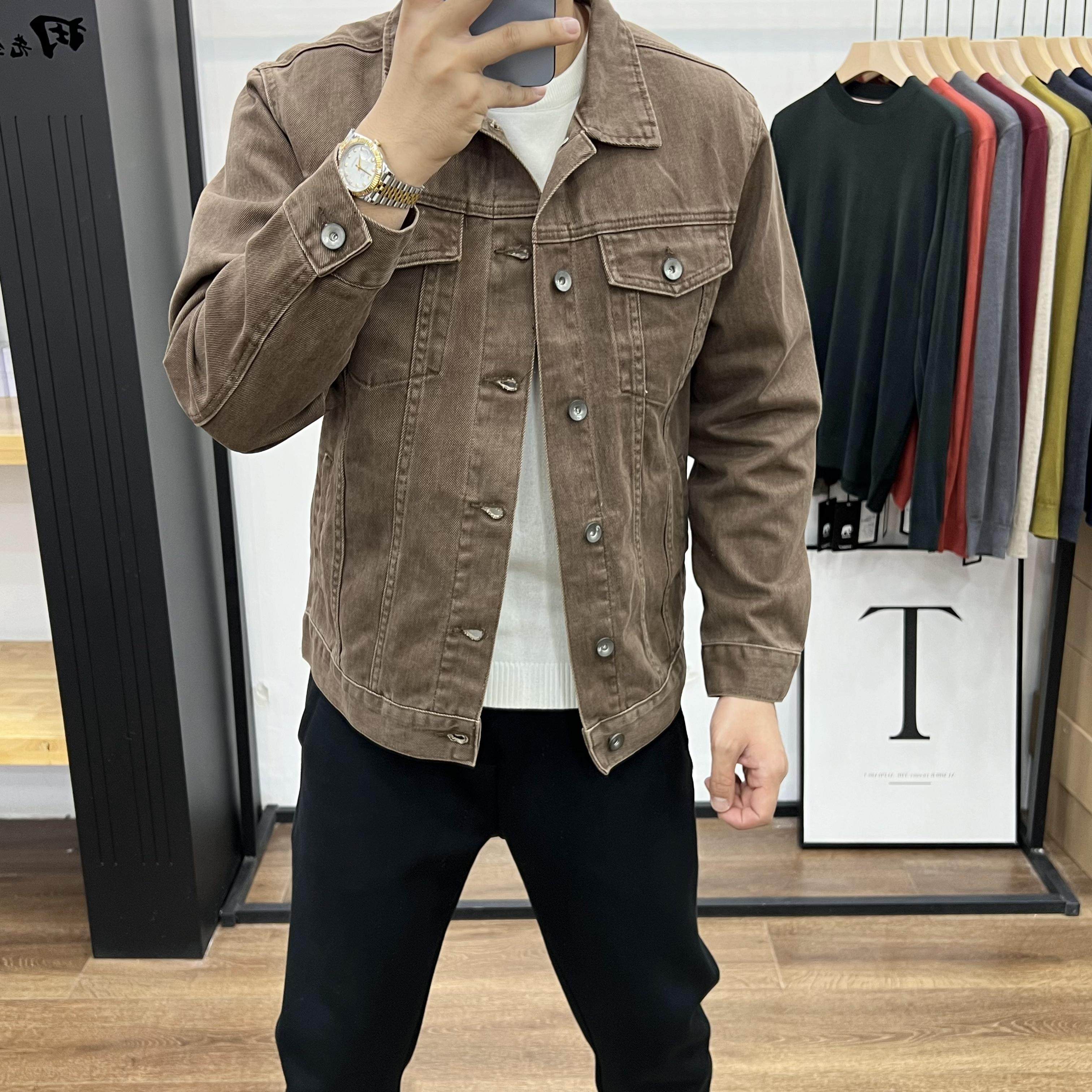 春秋季复古牛仔外套男士弹力修身水洗简约纯色宽松休闲工装夹克潮