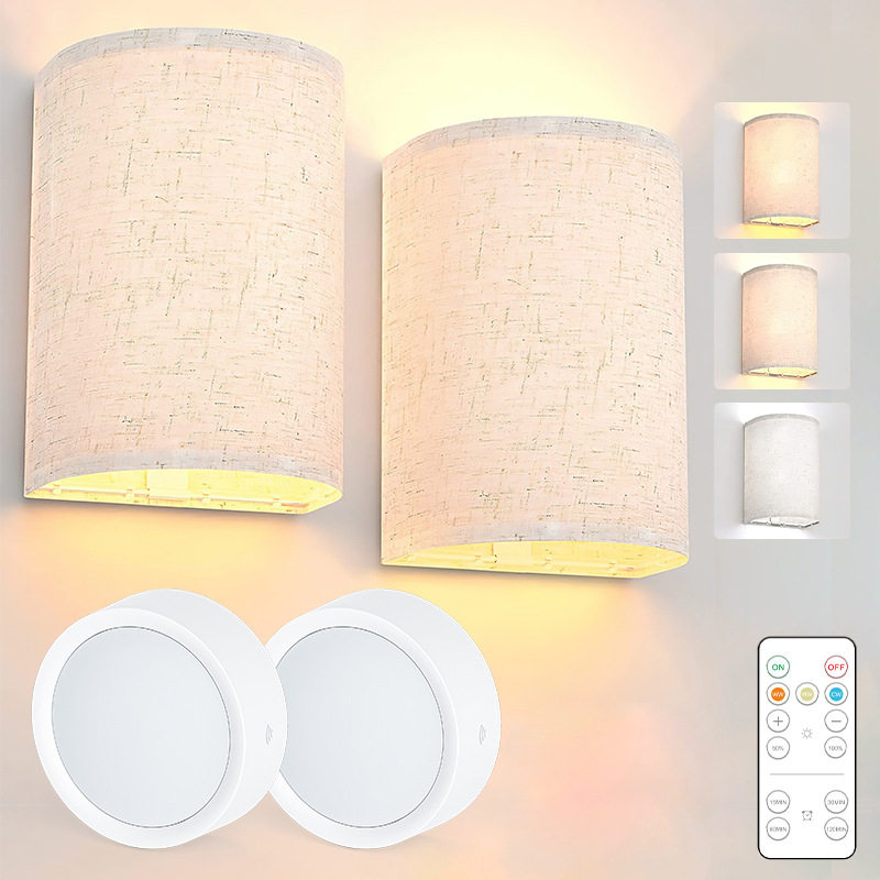 简约插电式卧室床头壁灯客厅走廊过道灯布艺免布线免打孔直插壁灯