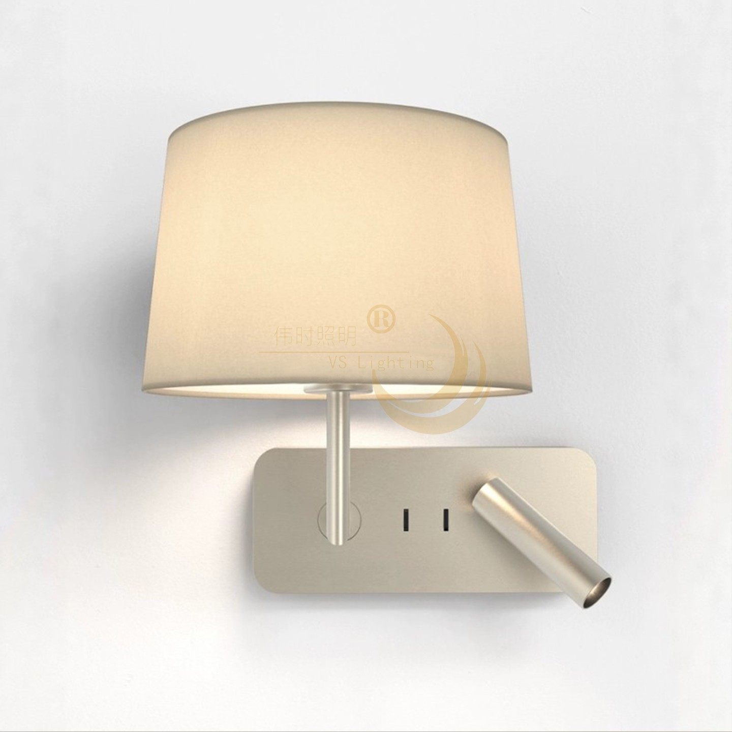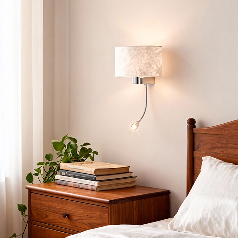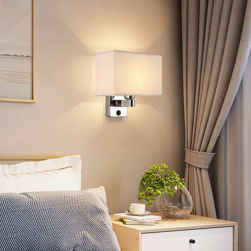 新款简约北欧书房白色布艺壁灯卧室床头灯客厅背景墙灯带拉链开关