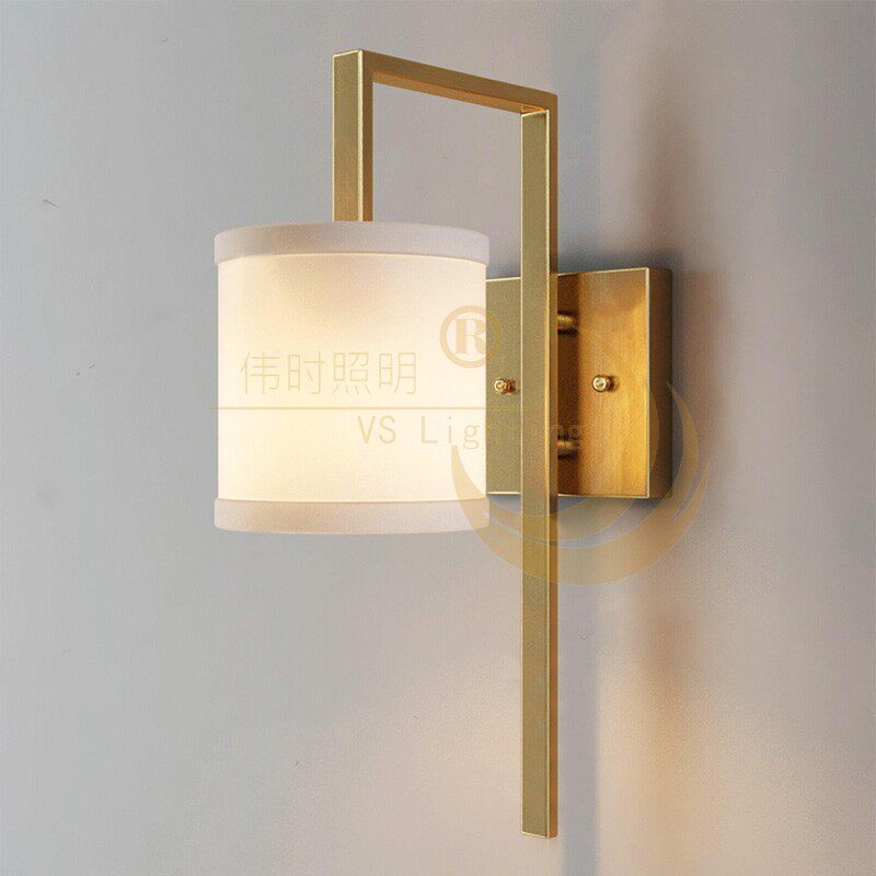 伟时定制极简新中式复古布艺壁灯工程设计师酒店售楼处走廊墙壁灯