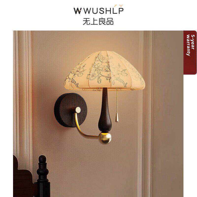 牡丹布艺壁灯中古法式覆古实木灯南洋风卧室床头高级感灯无上良品