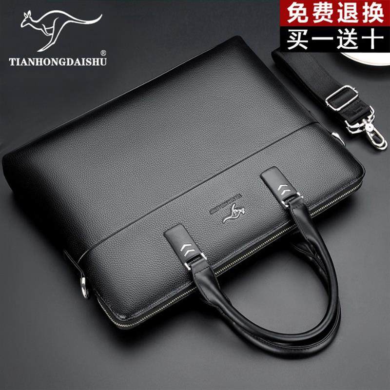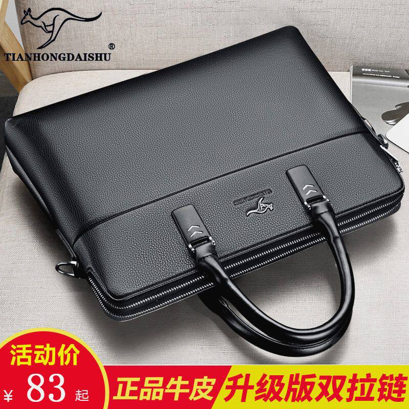 1天弘袋鼠手提包男士竖款商务男包牛皮单肩公文高端斜挎男士包包