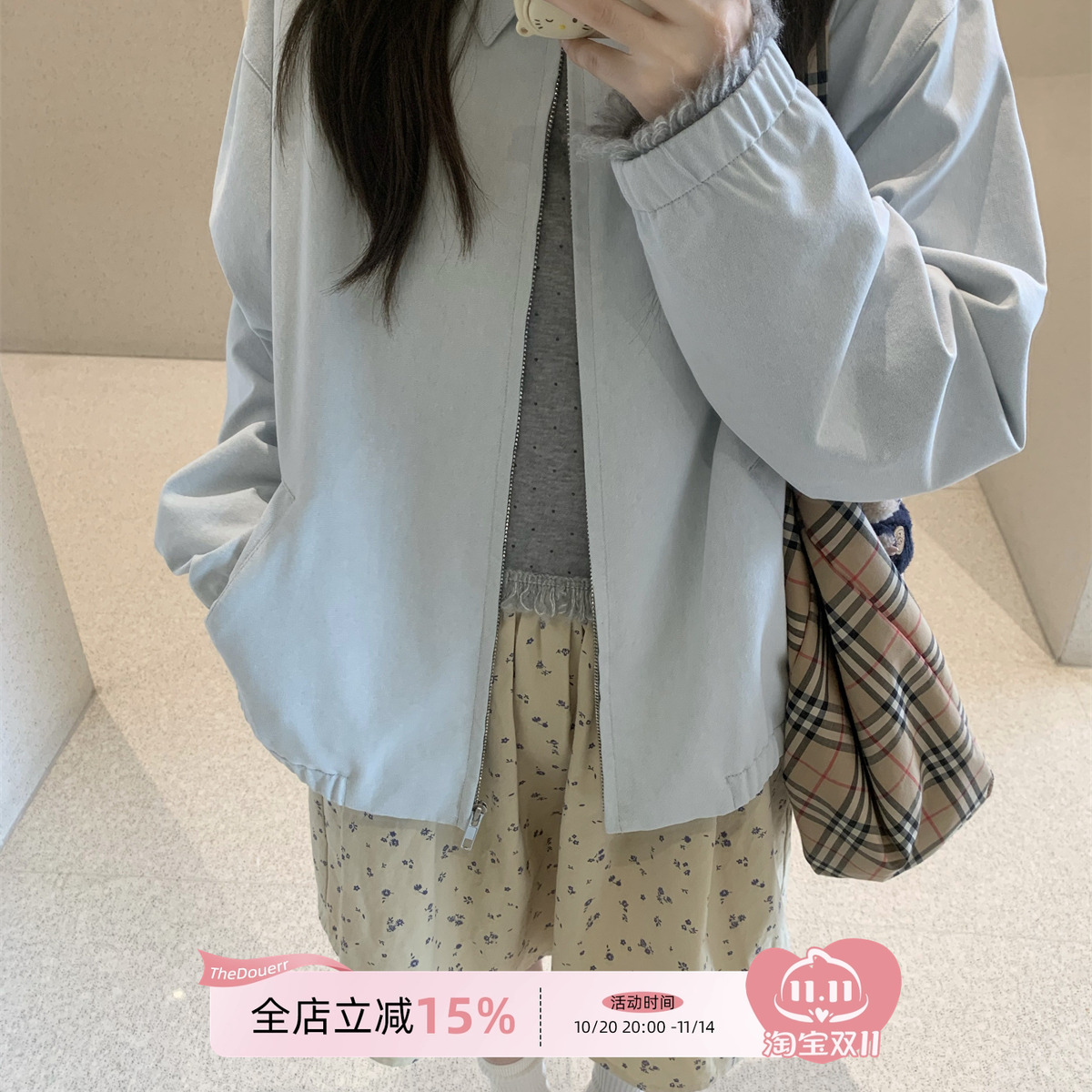 UNRETRO 重磅酵素水洗小版型全棉夹克外套女春秋季小个子宽松上衣