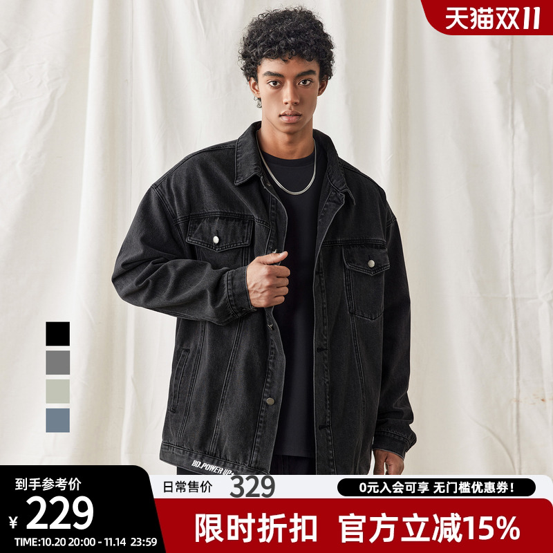 bdpowerup秋季新款牛仔外套男黑色宽松纯棉夹克外套男百搭休闲