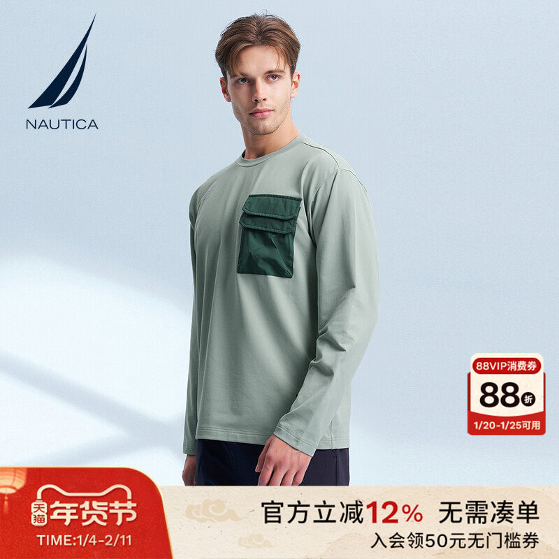 NAUTICA/诺帝卡男装秋冬抓绒保暖亲肤带弹长袖打底T恤TS4308