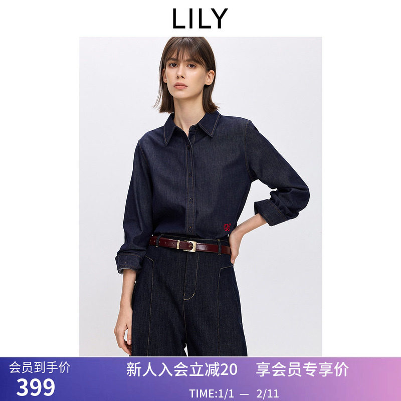 【商场同款】LILY2025新款含醋酸莱赛尔通勤深色牛仔衬衫外套女