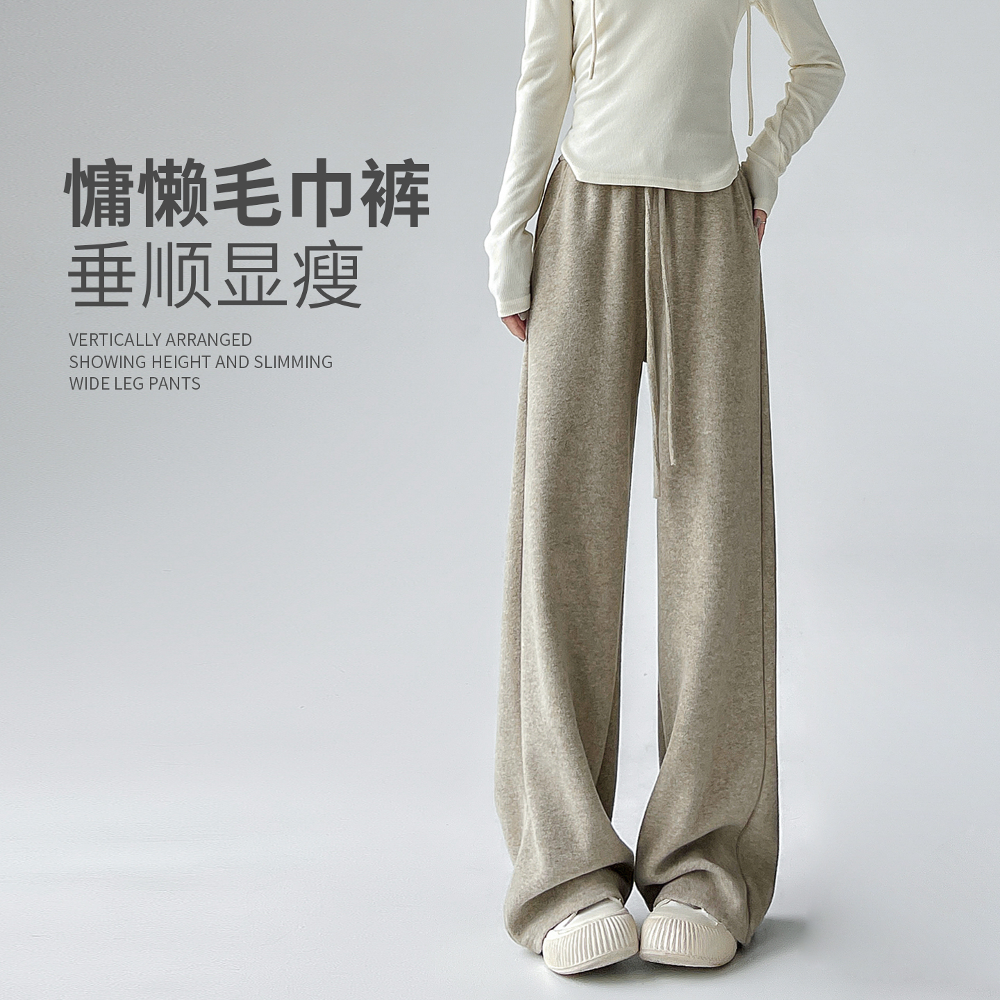 白色加绒裤子女2025新款秋冬宽松bf慵懒风垂感小个子山羊绒糯米裤