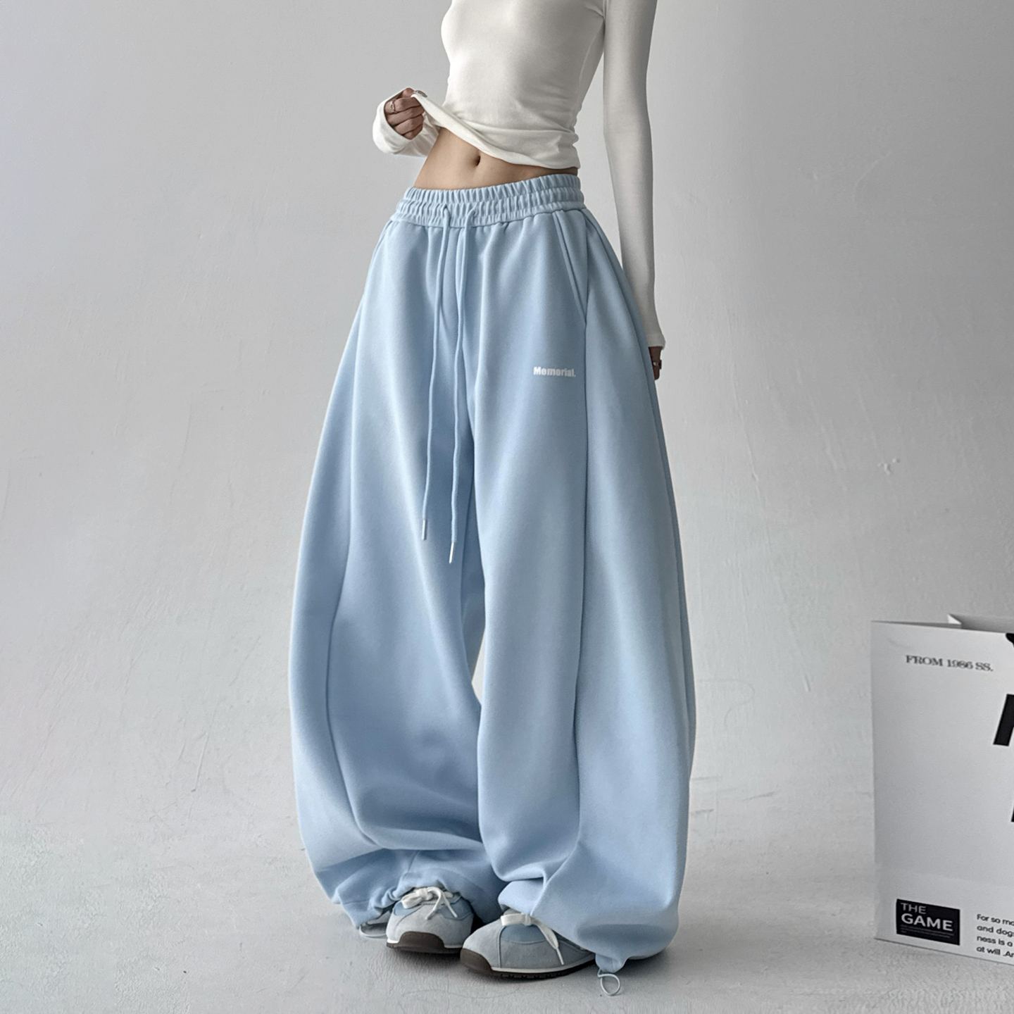 加绒白色糯米阔腿裤子女秋冬2025新款宽松直筒bf慵懒休闲运动卫裤
