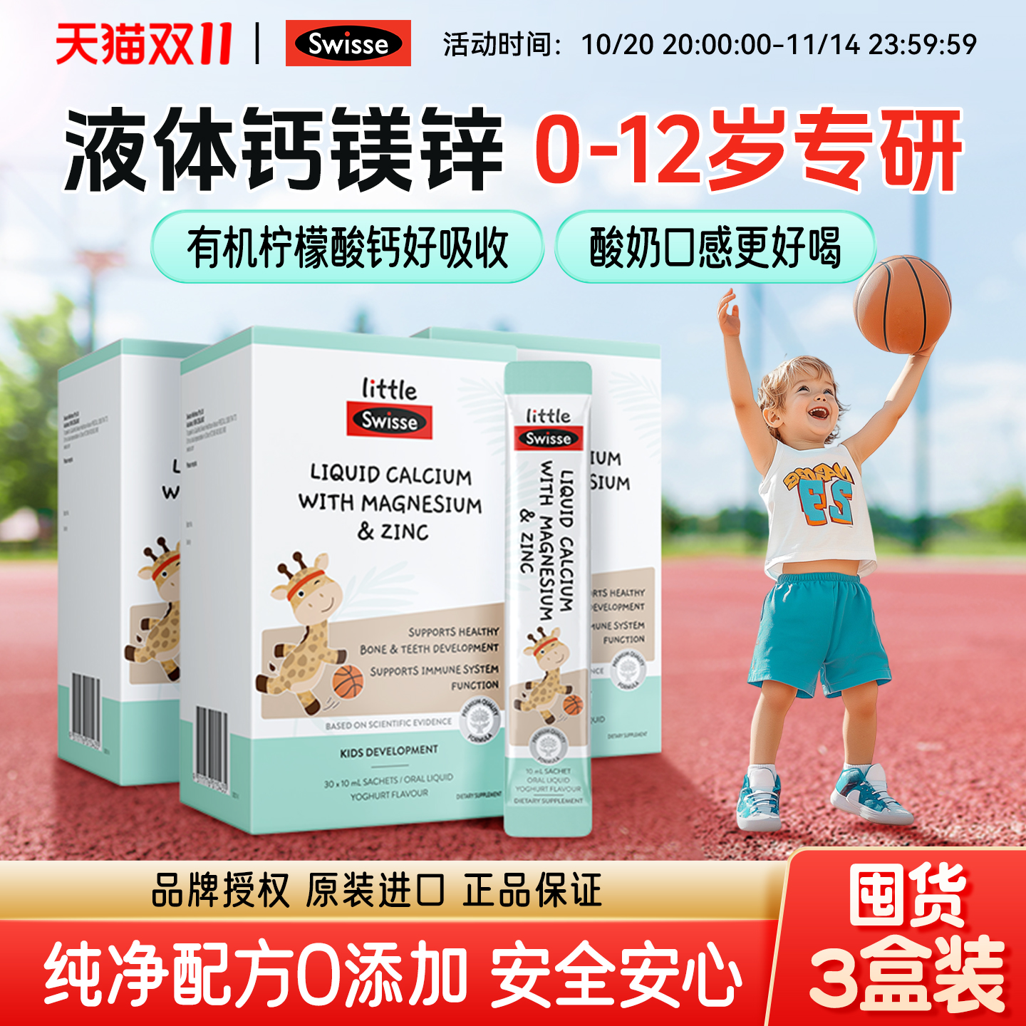 3盒装swisse斯维诗儿童液体钙镁锌补柠檬酸钙口服正品官方旗舰店