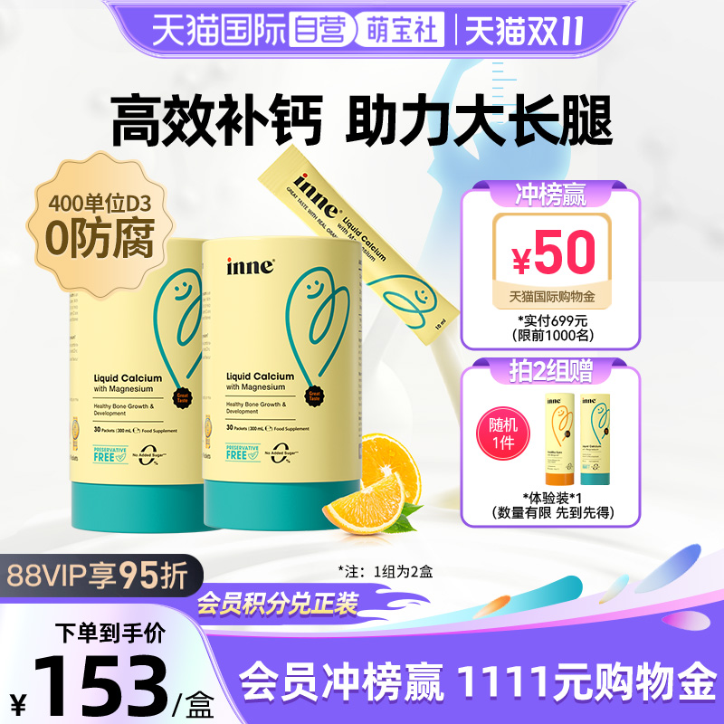 【2件装】inne因你小金条钙镁锌儿童液体钙婴幼一岁补钙铁旗舰店