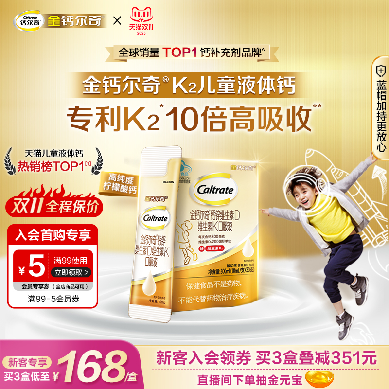 【立即抢购】金钙尔奇儿童液体钙柠檬酸钙k2青少年成长12岁以上