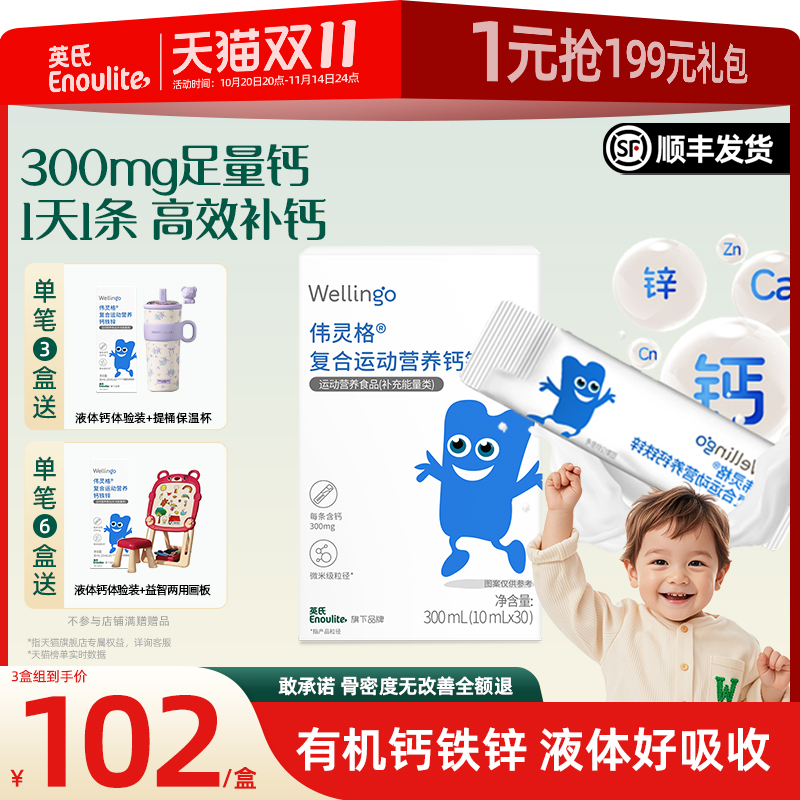 英氏伟灵格儿童液体钙铁锌补充剂三合一宝宝柠檬酸钙送婴幼儿食谱