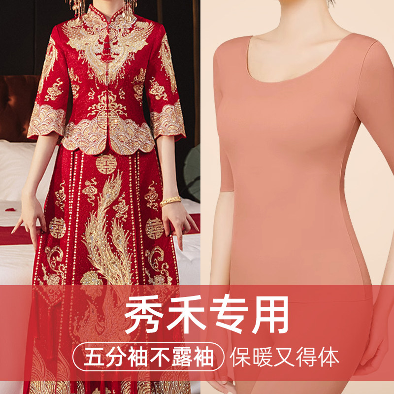 五分袖七分半袖秀禾内搭打底冬天保暖内衣套装秋衣秋裤上衣女冬季