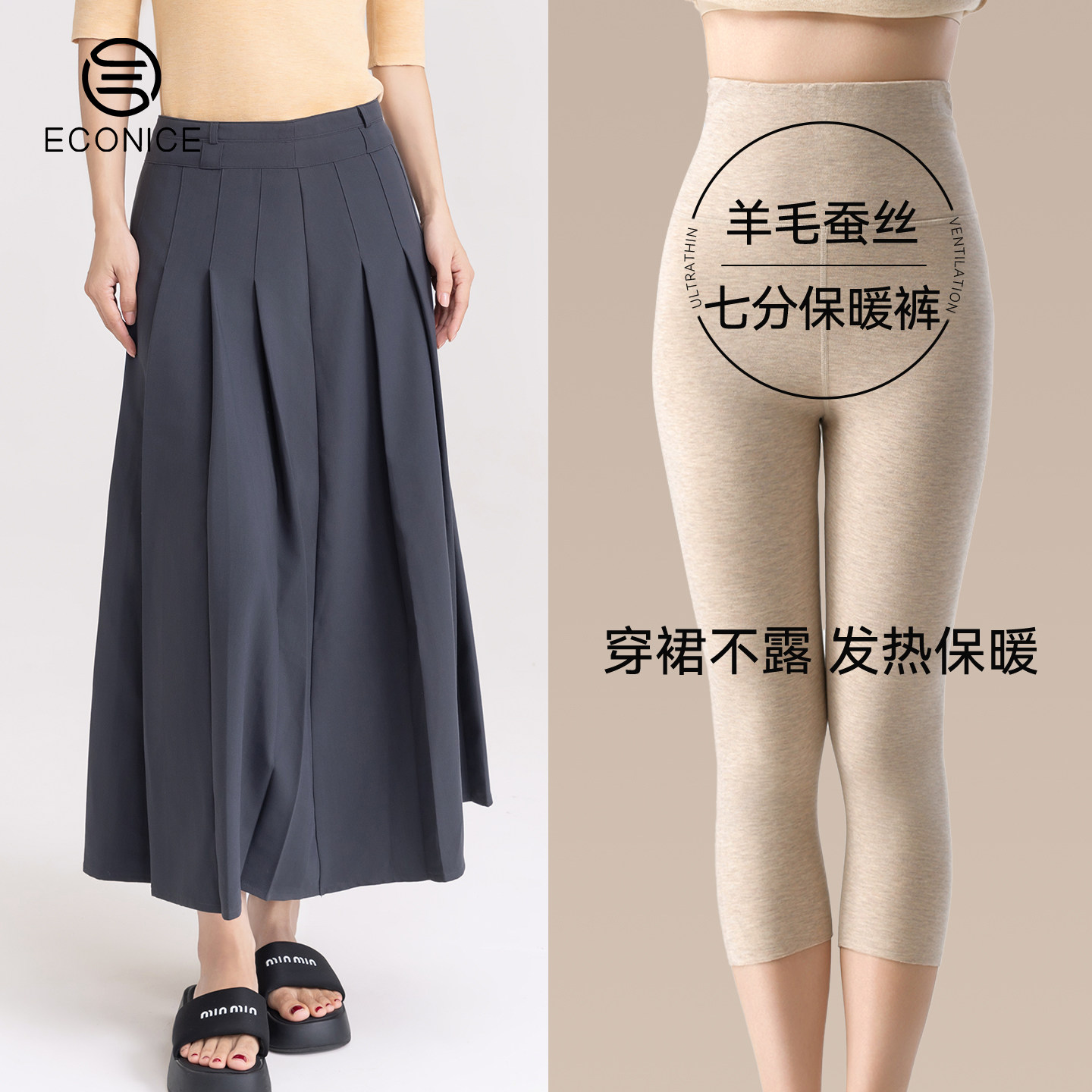 羊毛蚕丝七分保暖裤女士冬季裙子内穿打底裤吸湿发热加绒无痕秋裤