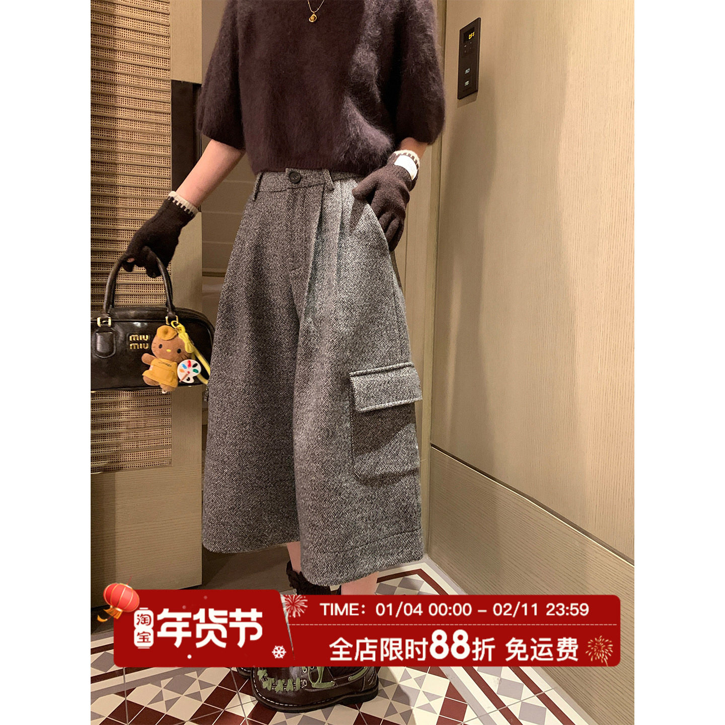 - 毛呢阔腿短裤