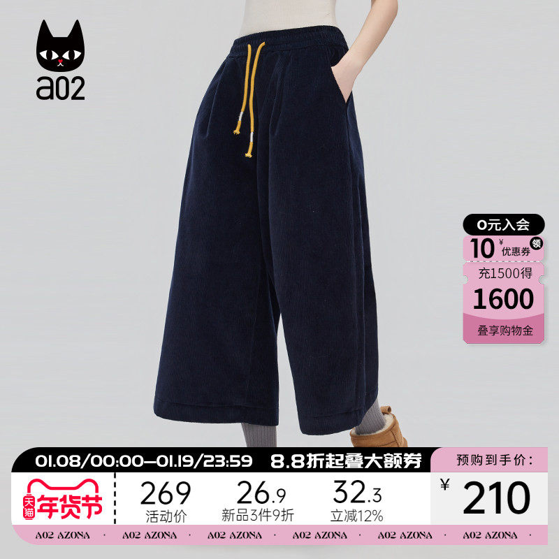 a02宽松灯芯绒七分休闲裤子女2025新款冬季加绒加厚保暖阔腿裤