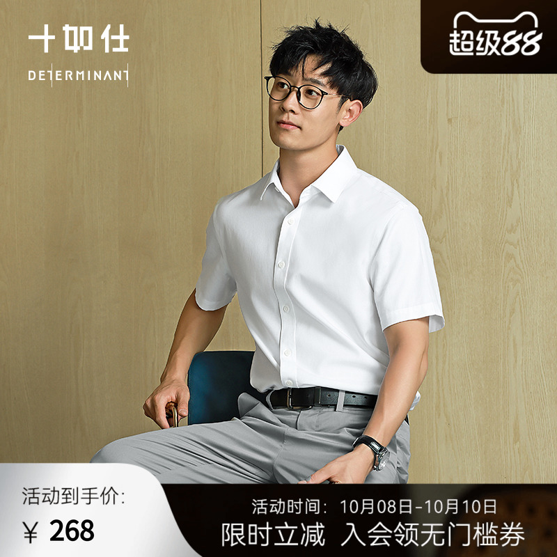 十如仕短袖白衬衫男士商务夏衬衣宽松免烫职业正装男装上衣301