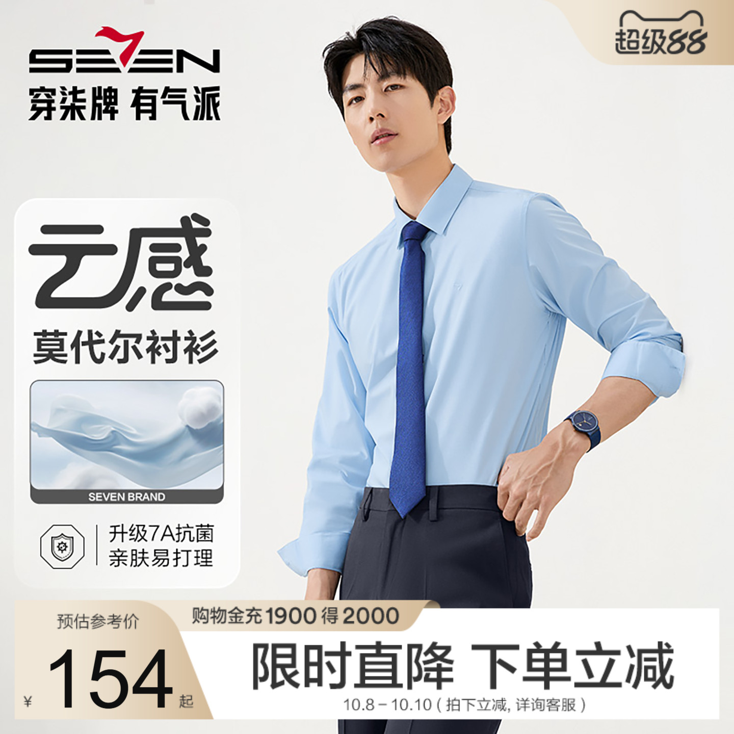 【莫代尔】柒牌男装商务长袖衬衫秋季青年男士结婚白衬衣正装上衣