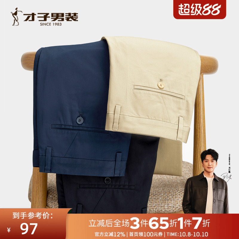 才子男装商务正装休闲裤男修身工装休闲长裤直筒弹力西裤黑色裤子