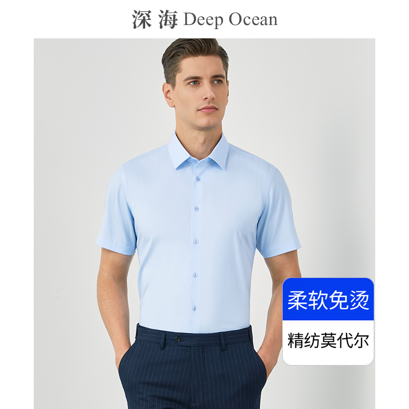 深海衬衣男士夏季莫代尔细纺微弹免烫衬衫短袖男商务休闲正装男装