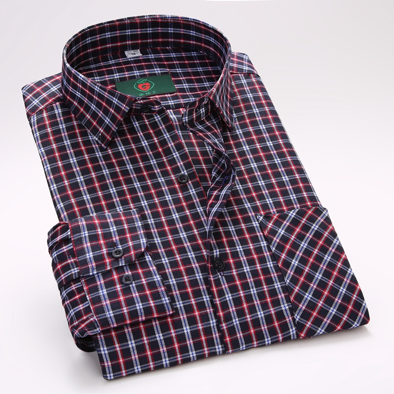 男士商务休闲正装男装格子衬衫宽松寸衣爸爸装40岁人喜庆中年衬衣