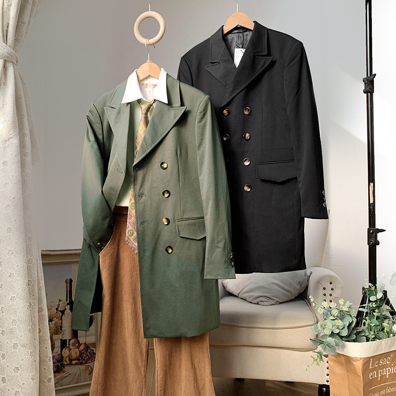 高货!撤柜~原1198~欧美风双排扣商务正装男装中长款西装风衣秋冬