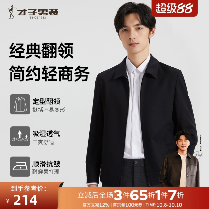 【香菇宠粉节】才子男装夹克男2025春秋修身正装行政短款翻领外套