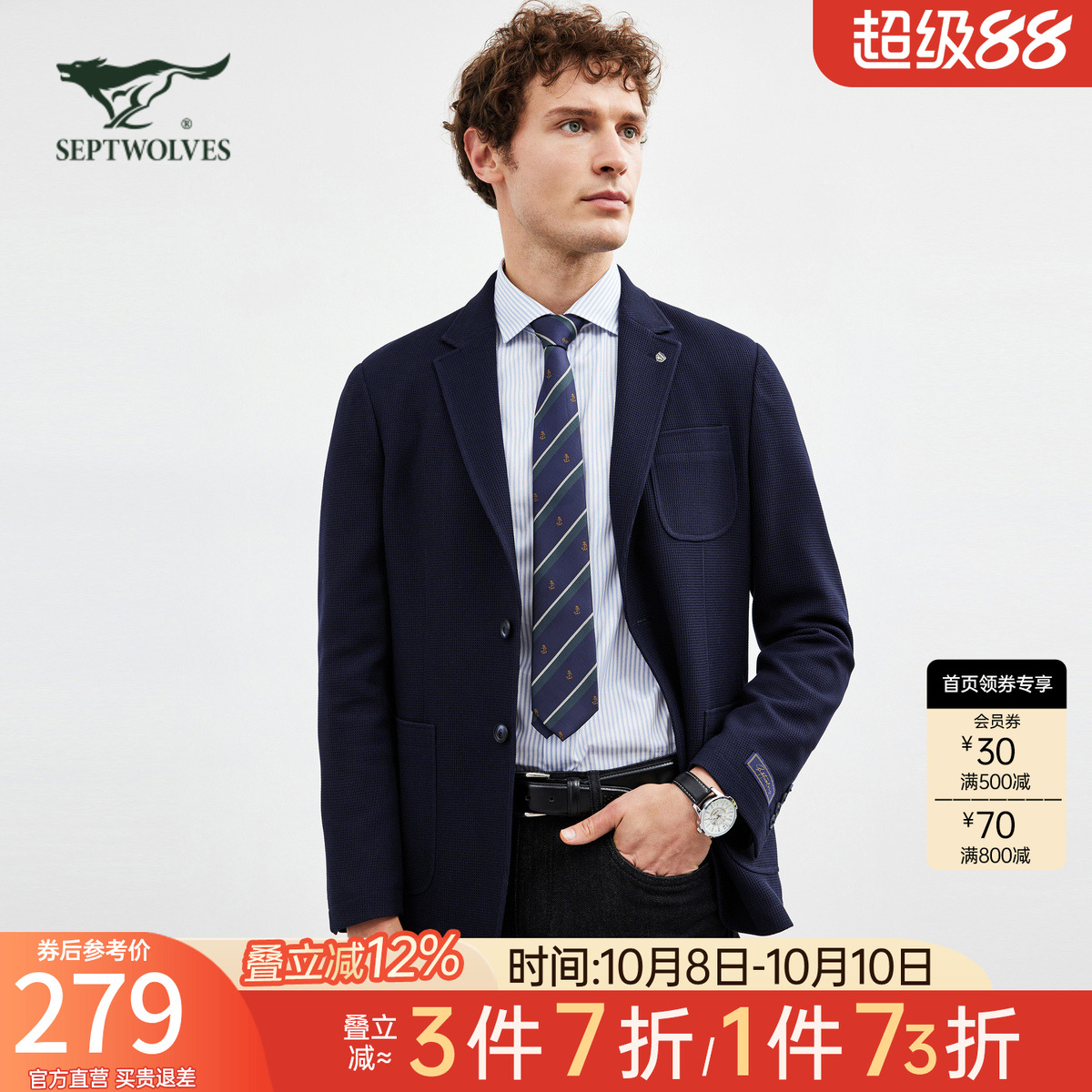 七匹狼男士休闲西服春秋季新款华夫格西装商务上衣外套正装男装潮