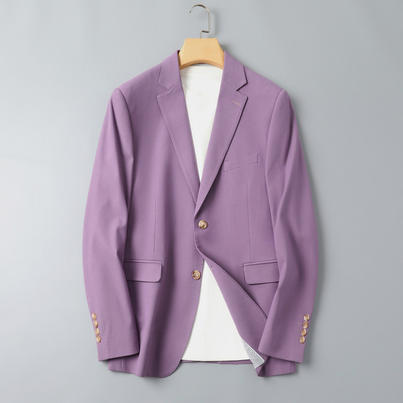 高级感紫色双扣西装男士秋冬季痞帅纯色正装男装婚礼休闲西服外套