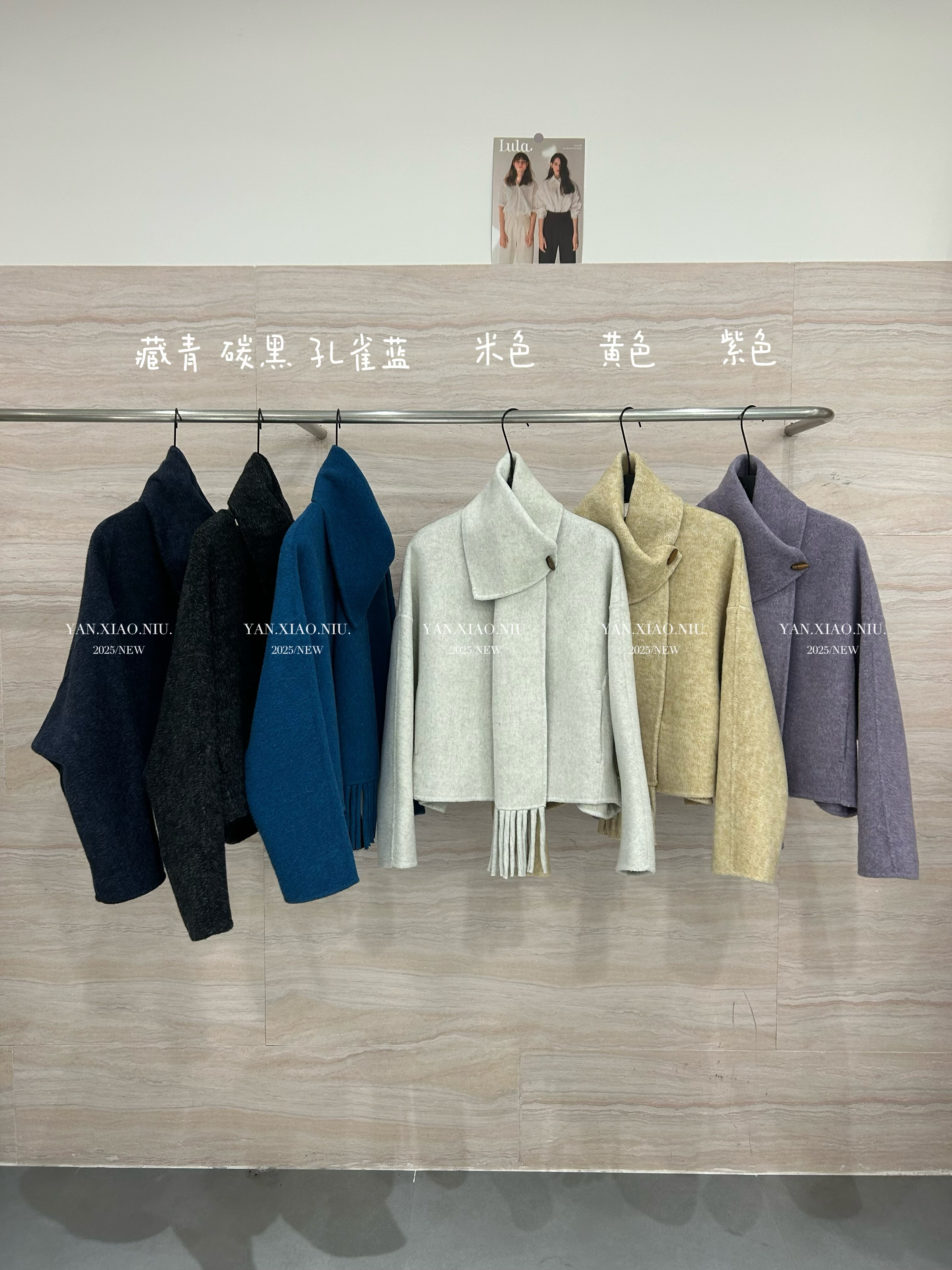 2025韩版小香流苏V领100澳洲超细羊毛毛呢外套女短款FDD长53