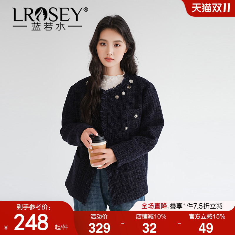 蓝若水大码女装名媛小香风毛呢外套2025秋装新款高级感流苏上衣