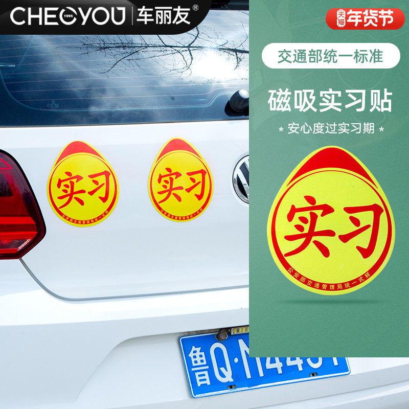 实习车贴新手上路车贴纸磁吸女司机提示车贴搞笑磁性实习期标志贴