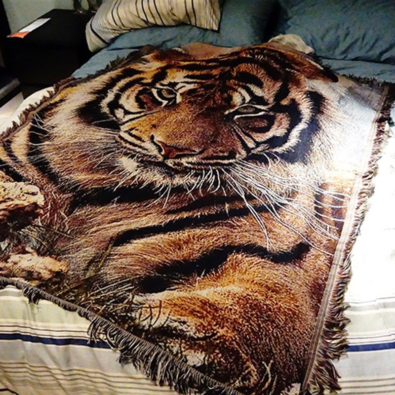 老虎虎头家居装修粗犷挂毯简约风格休闲毯盖毯创意寝室用毛毯绒毯