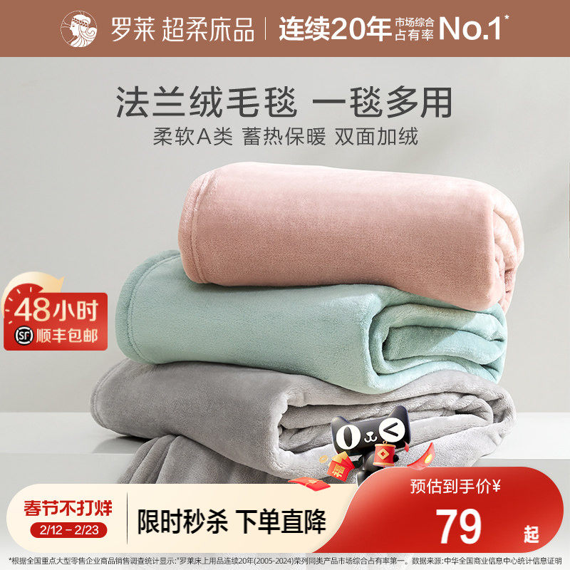 罗莱家纺秋冬沙发毯加厚保暖毛毯办公室午睡毯子盖毯法兰绒毯送礼