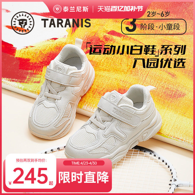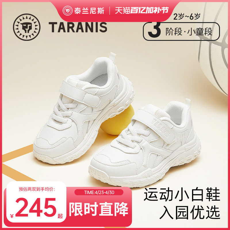 泰兰尼斯儿童运动鞋春季款男女童跑步鞋时尚透气男童幼儿园小白鞋
