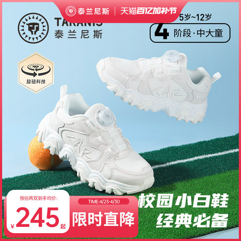 泰兰尼斯儿童运动鞋春季款男女童校园小白鞋舒适缓震跑步鞋休闲鞋