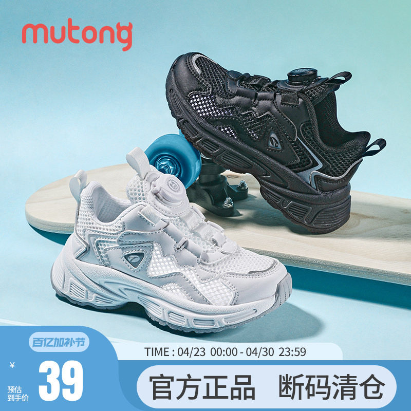 【断码清仓】牧童运动鞋夏季小白鞋女童旋转纽扣透气男童跑步鞋子