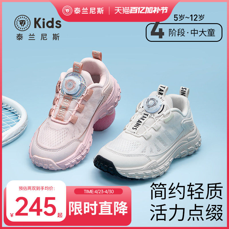 泰兰尼斯kids中大童春夏款运动鞋男女童透气缓震跑步鞋校园小白鞋