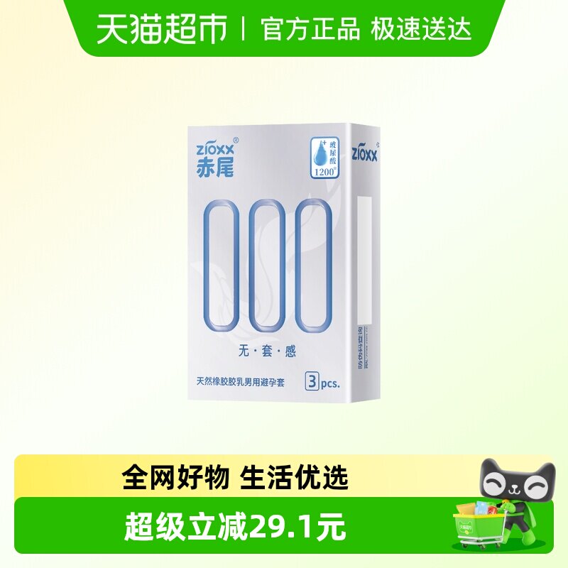 赤尾避孕套000超薄安全套3只*2盒玻尿酸加倍润滑套套男用成人用品