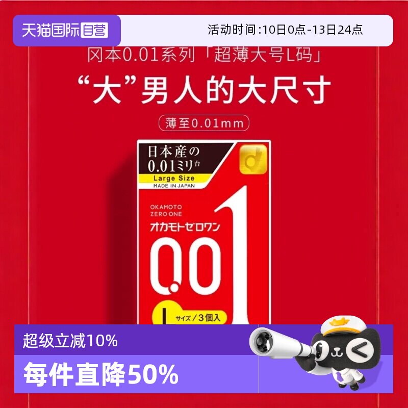 【自营】冈本001避孕套超薄0.01安全套L大码3只*3盒男用成人用品