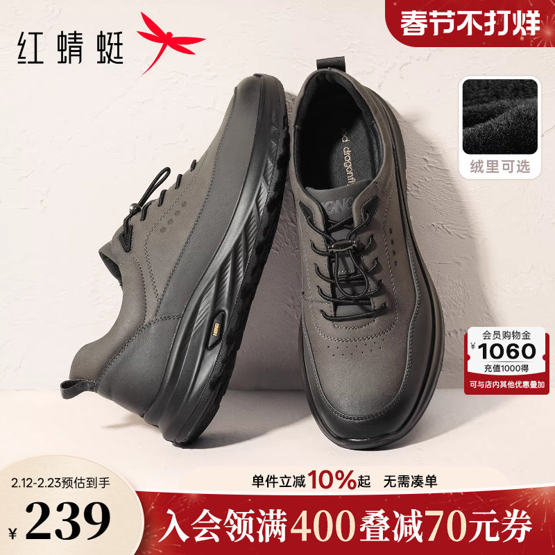 红蜻蜓休闲运动鞋冬季新款男鞋厚底加绒保暖软底旅游中年爸爸鞋子