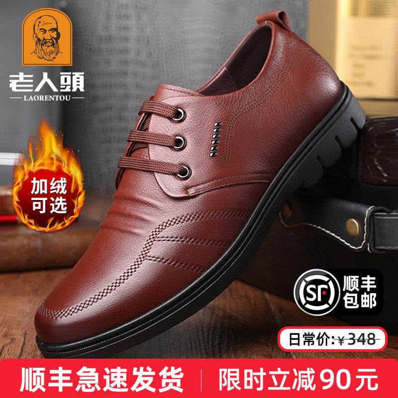 老人头男鞋冬季牛皮中年商务休闲皮鞋男真皮加绒男士正装皮鞋软底