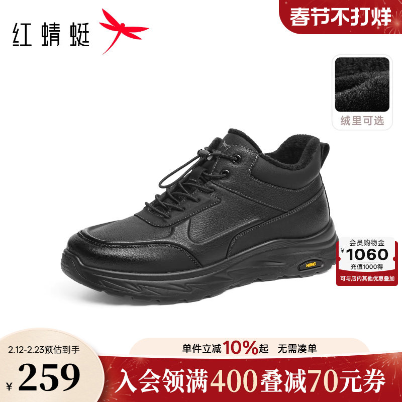 红蜻蜓官方男士皮鞋冬季新款男鞋加绒高帮鞋休闲保暖中年爸爸棉鞋