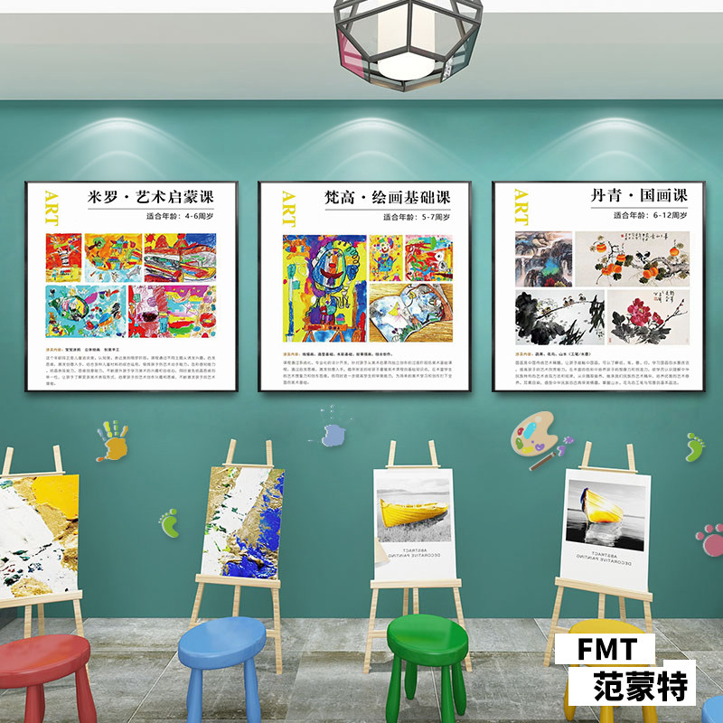 儿童画室布置少儿美术教室艺术培训教育机构学校墙面装饰画框挂画
