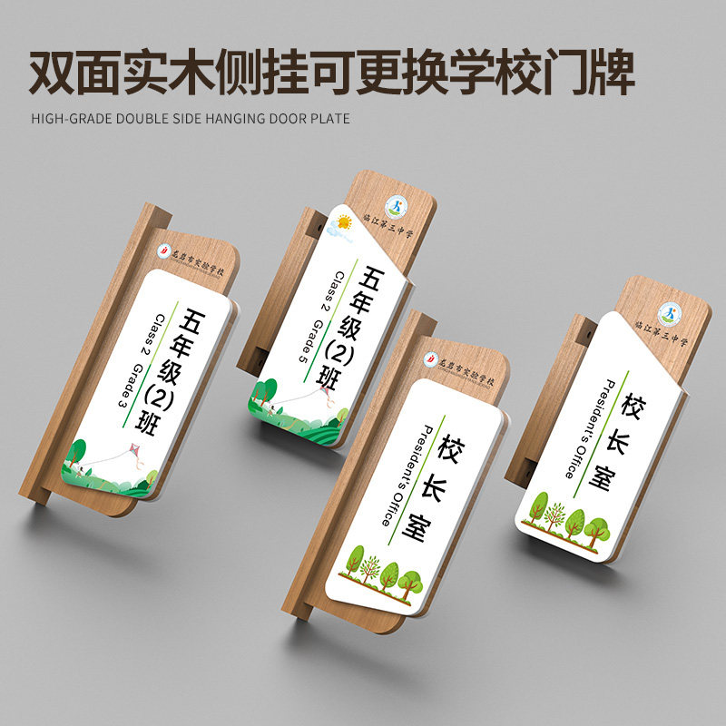 学校教室实木门牌双面侧挂可更换式标识牌订做幼儿园年级班级牌培训教育机构科室牌校长室办公室标牌创意订做